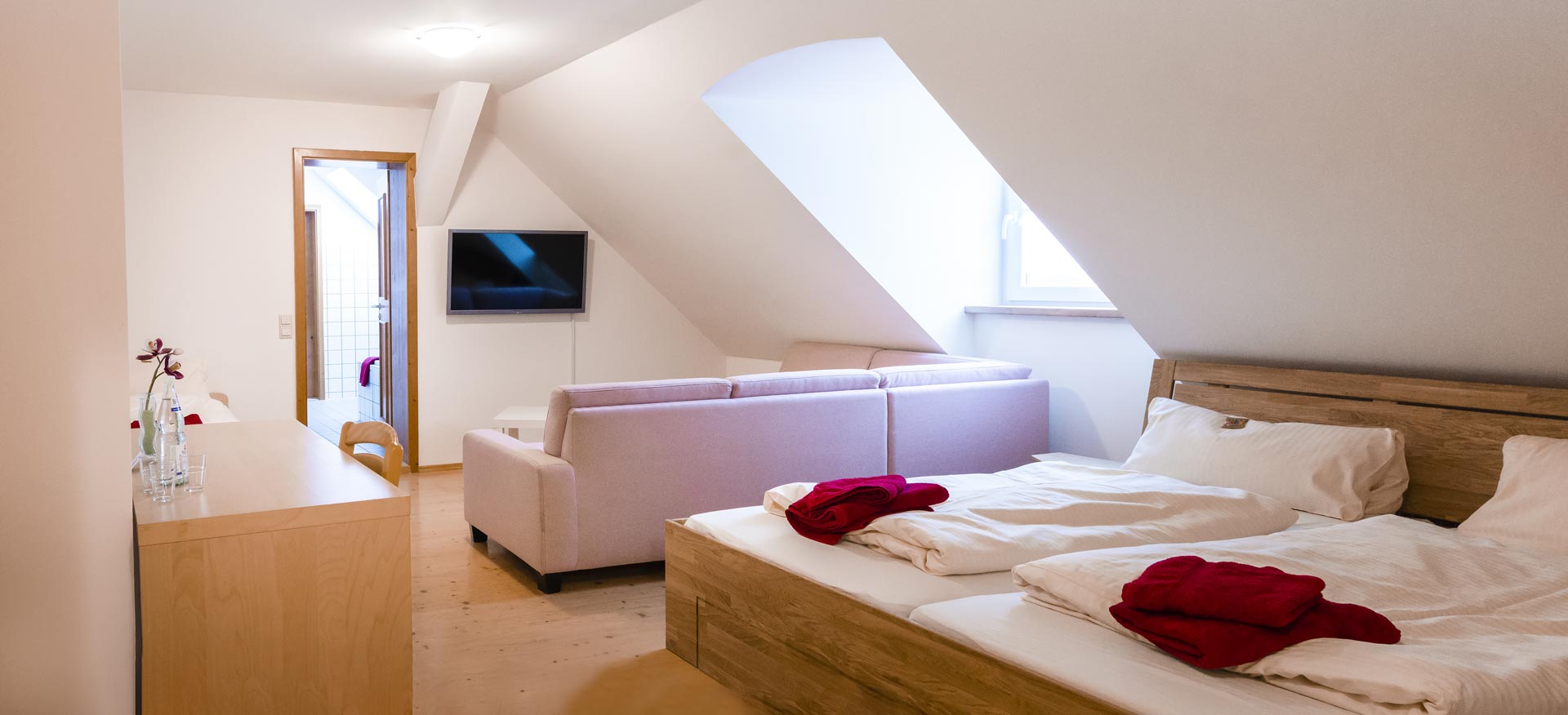 Unseren Gästen bieten wir liebevoll eingerichtete Zimmer mit Dusche, WC, Satelliten TV und WLAN-Internetzugang.